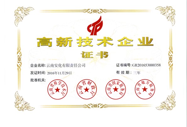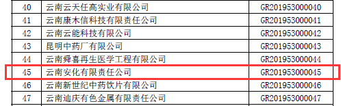 根據(jù)全國(guó)高新技術(shù)企業(yè)認(rèn)定管理工作領(lǐng)導(dǎo)小組辦公室《關(guān)于云南省2019年高新技術(shù)企業(yè)備案的復(fù)函》(國(guó)科火字﹝2019﹞235號(hào)),公司再次獲得“高新技術(shù)企業(yè)”稱(chēng)號(hào)。