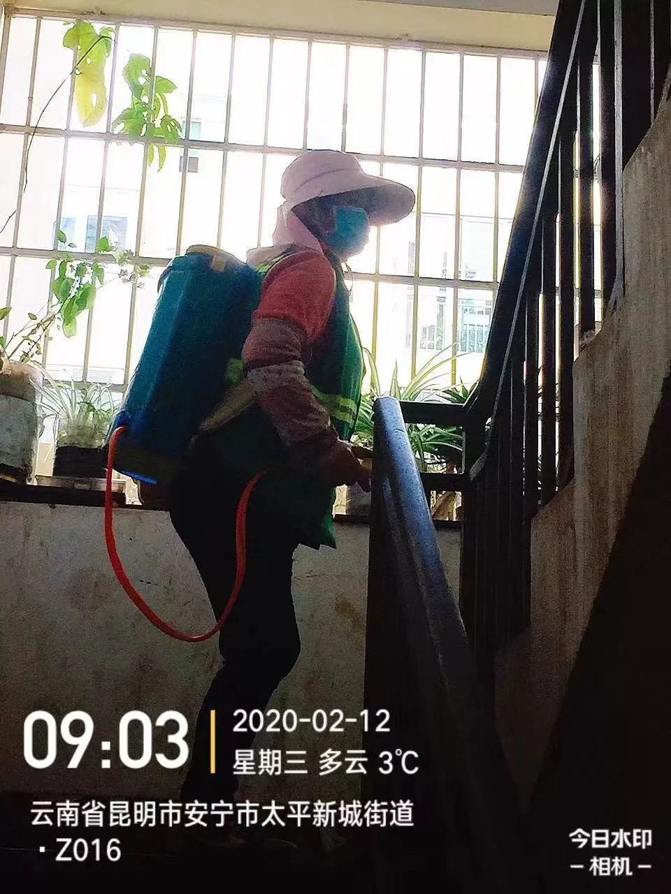 物業(yè)管理公司對(duì)生活區(qū)單元樓及單元門(mén)進(jìn)行消毒