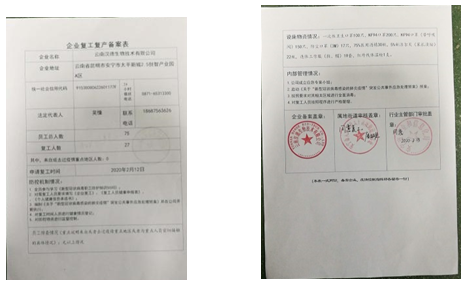 2月2日:1.上午9:15分,配合福保祥瑞公司接受安寧市工信局、安寧市疾控中心檢查組進(jìn)行復(fù)工復(fù)產(chǎn)準(zhǔn)備工作檢查;因消毒液、酒精、口罩、測溫儀物資稀缺、復(fù)工人員登記記錄還不夠全面等,要求繼續(xù)整改。2.經(jīng)多方籌集物資并對復(fù)工人員進(jìn)行詳細(xì)登記整改后,下午16:40分再次邀請檢查組對整改落實情況進(jìn)行復(fù)查。