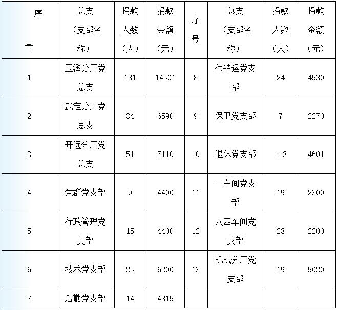 以下是各黨總支、黨支部捐款情況: