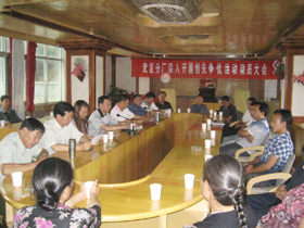 2010年6月28日,為了慶祝建黨八十九周年,武定分廠黨總支組織34名黨員開展了一系列豐富多彩的慶祝活動(dòng)。首先,分廠廠長、黨總支書記張述松同志作了慶祝建黨八十九周年講話;組織5名新黨員在黨旗下進(jìn)行莊嚴(yán)宣誓;表彰了5名在2009年開展“云嶺先鋒工程”活動(dòng)中涌現(xiàn)出的優(yōu)秀共產(chǎn)黨員;以“如何爭做優(yōu)秀共產(chǎn)黨員”為主題舉辦一次黨課教育;會(huì)后,組織全體黨員到正在進(jìn)行施工的搬遷工地了解工程建設(shè)進(jìn)度,為黨員同志提供了參與工廠大事的渠道,以激勵(lì)廣大黨員干部的工作熱情。
