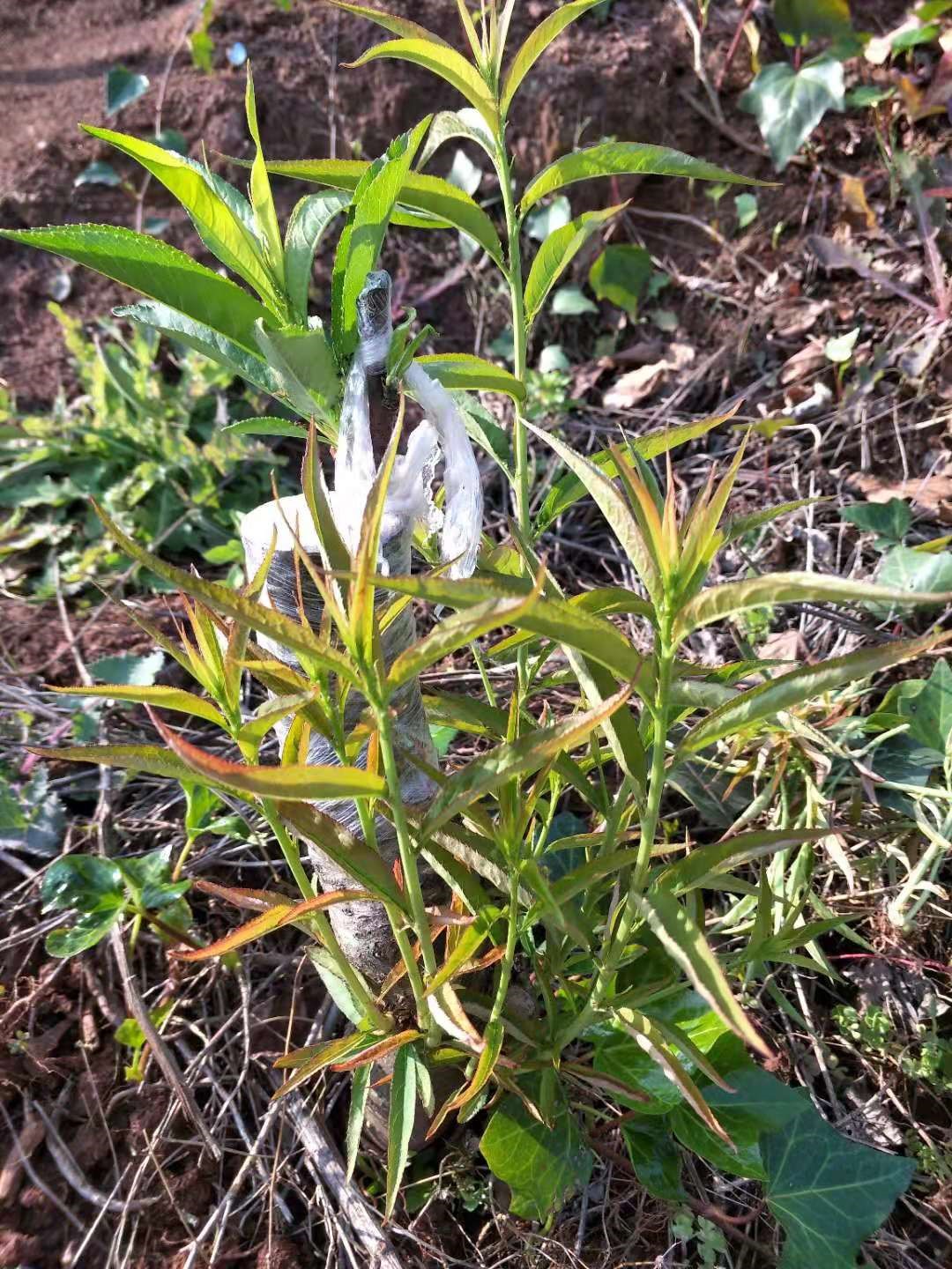 一天,風(fēng)特別大,原本茂盛的嫩桃樹被吹斷了幾棵,原因是由于包扎的薄膜束縛帶勒得太緊,桃樹枝又長得纖細(xì),容易被風(fēng)吹斷。養(yǎng)護(hù)人員給樹枝拆下薄膜松綁后,桃樹長勢較好。