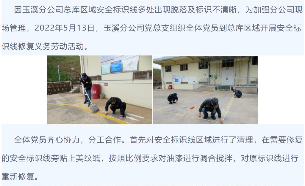 玉溪分公司組織黨員開展修復(fù)安全標(biāo)識線義務(wù)活動