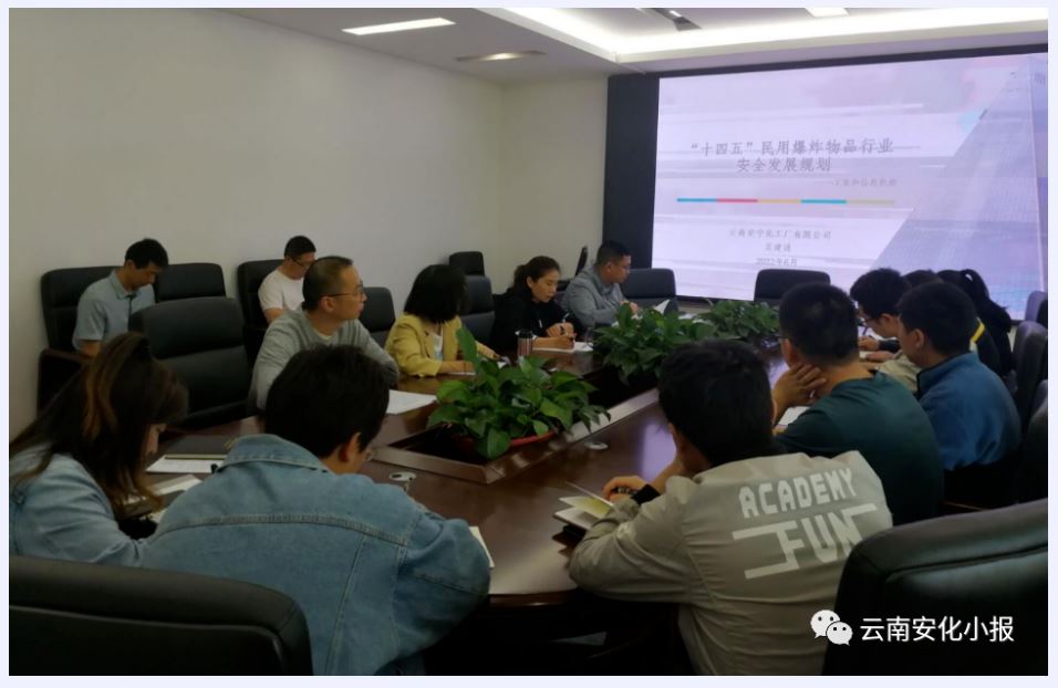 按照公司《2022年員工培訓(xùn)計劃》要求,2022年6月15日上午,在公司研發(fā)檢測樓3樓會議室組織開展了“十四五”民用爆炸物品行業(yè)安全發(fā)展規(guī)劃解讀培訓(xùn),安全設(shè)備部、技術(shù)質(zhì)量部全體人員參加培訓(xùn),副總工程師吳建進主持會議。